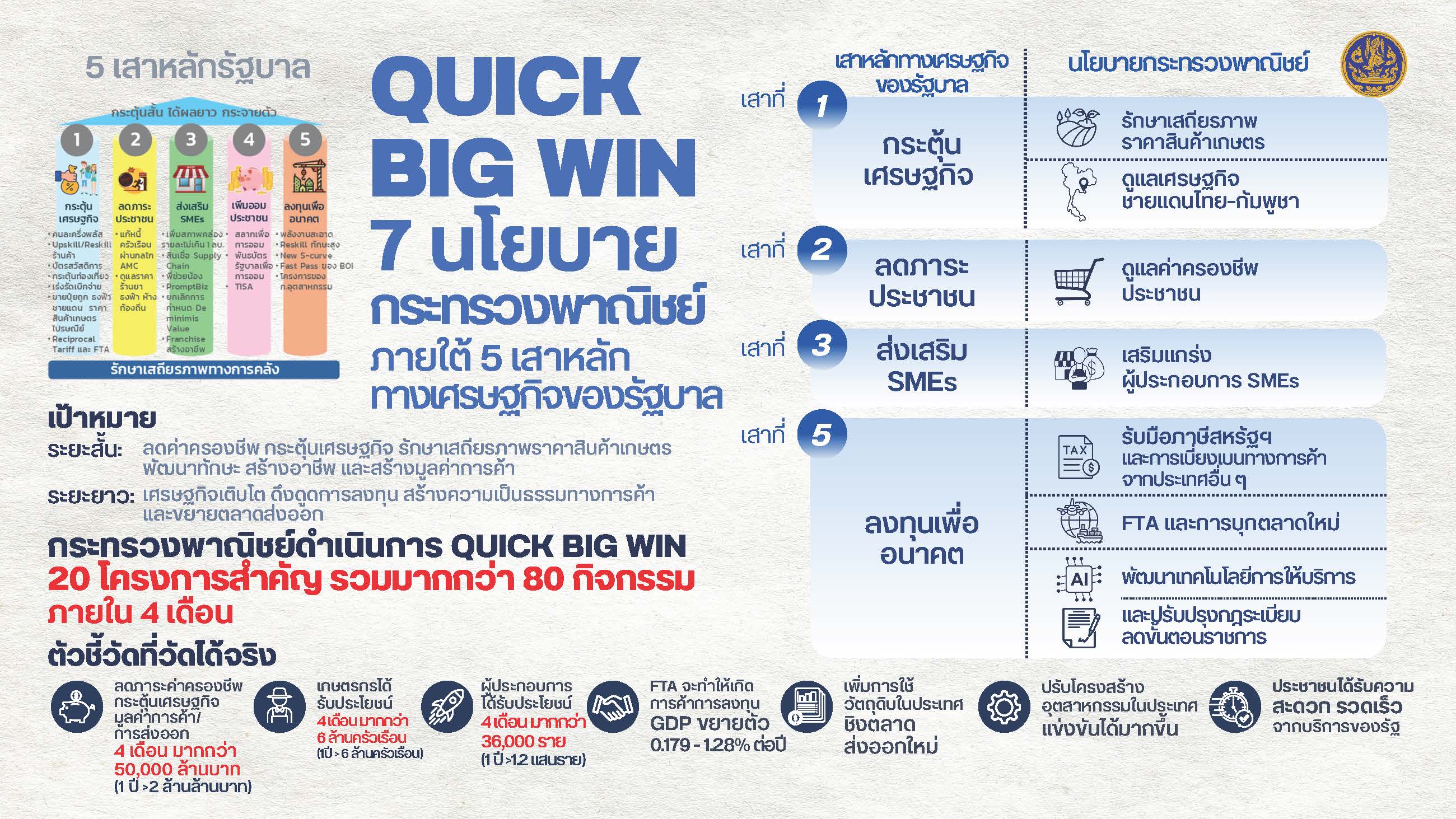 QUICK BIG WIN 7 นโยบาย กระทรวงพาณิชย์ ภายใต้ 5 เสาหลัก เป้าหมาย ทางเศรษฐกิจของรัฐบาล